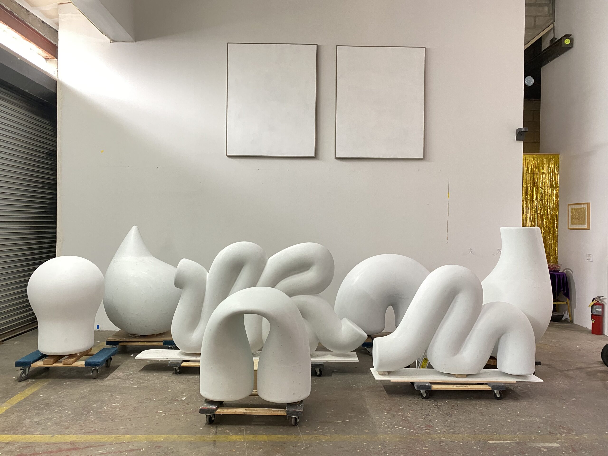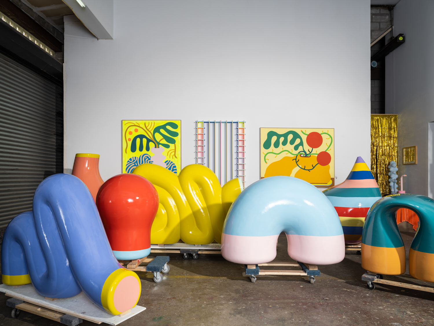 The colorful collection of work features a series of playful, abstract shapes scattered on the lawn that play on the concepts of surrealist philosophies of “dream symbols” as portals to thought and discovery.